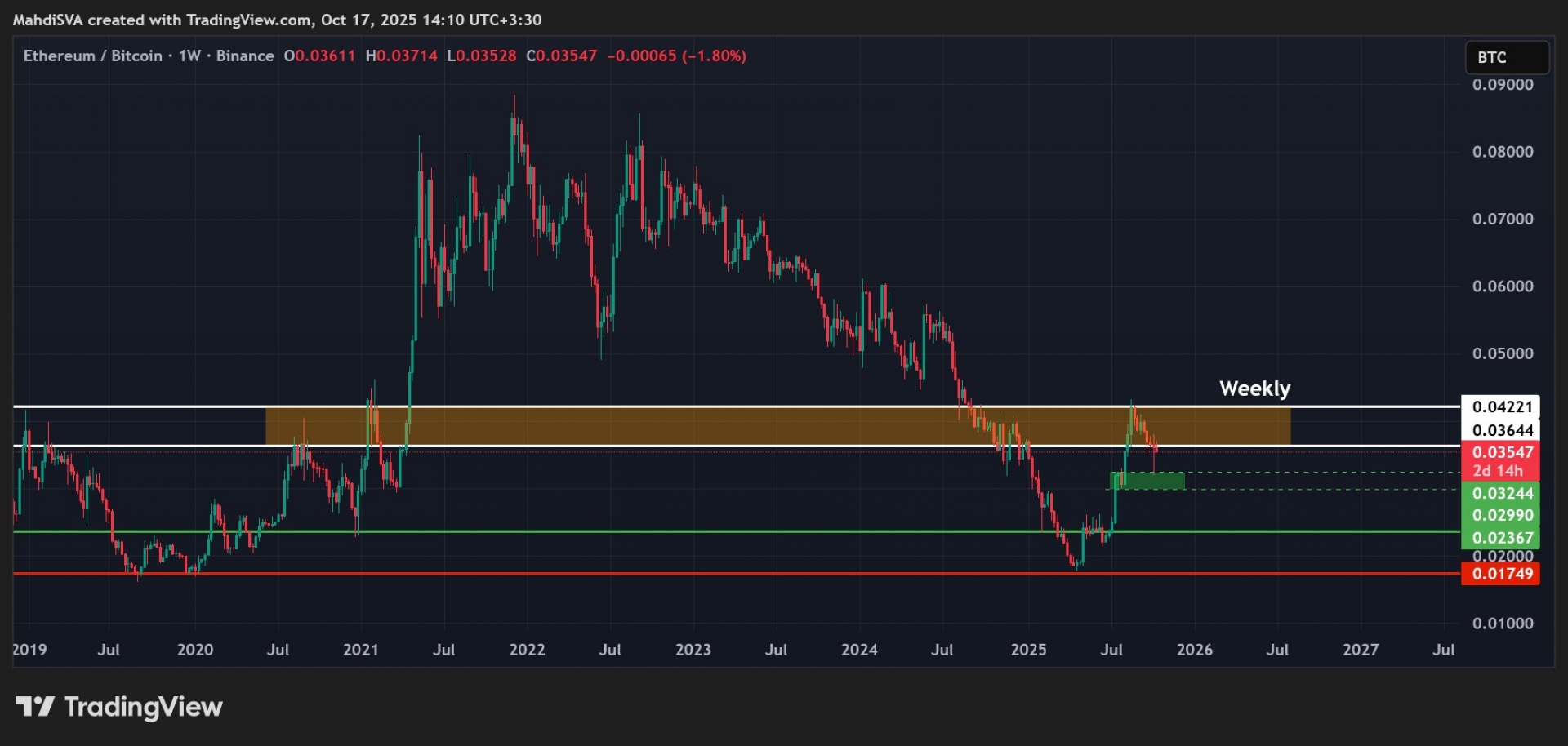 نمودار اتریوم به بیت کوین؛ تایم فریم هفتگی